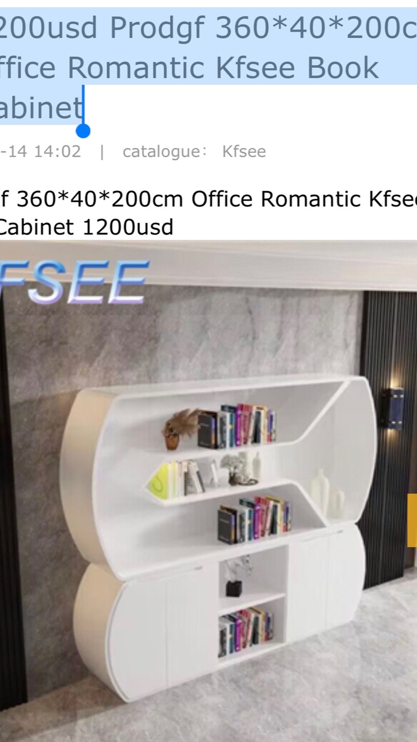 1200usd Prodgf 360*40*200cm Office Romantic Kfsee Book Cabinet 作者Dmile Iris2023年4月13日发表在未分类 1200usd Prodgf 360*40*200cm Office Romantic Kfsee Book Cabinet 分享到: 点击以分享到 X(在新窗口中打开) X 点击分享到 Facebook (在新窗口中打开) Facebook 赞 正在加载……